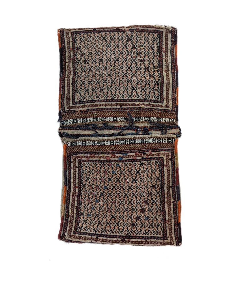 Questa straordinaria bisaccia nomadica persiana, o Khorjin, è un autentico esempio di artigianato tradizionale, tessuto a mano con lana di alta qualità e tinte naturali. Le tonalità terrose e i dettagli intricati raccontano storie di antiche tradizioni tramandate di generazione in generazione.