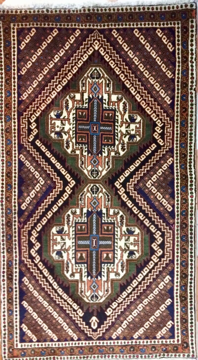 Questo straordinario tappeto persiano della tipologia Sirdjand, con dimensioni di 136x76 cm, rappresenta una perfetta combinazione di artigianato tradizionale e design geometrico distintivo. Annodato a mano con maestria, è un pezzo unico che dona carattere e autenticità a qualsiasi spazio.