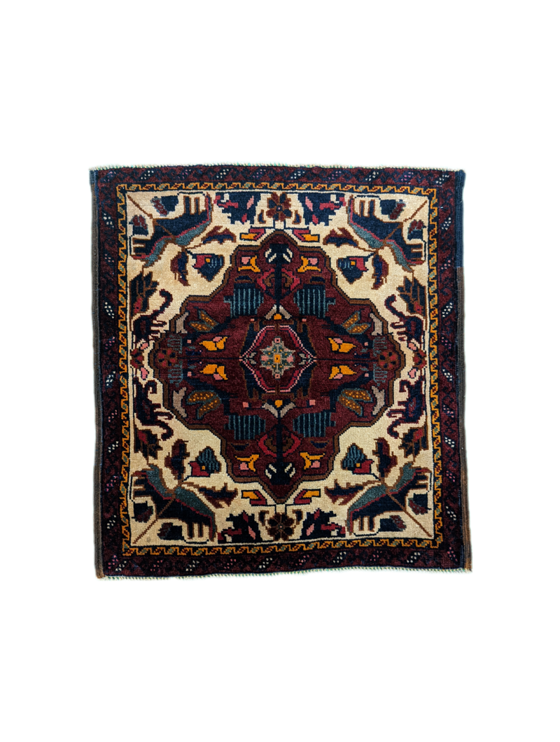 Il tappeto Turkmeno (67x61 cm) è un capolavoro della tradizione artigianale dell’Asia Centrale, ricco di simboli e motivi che riflettono la cultura e la maestria dei tessitori turkmeni. Il disegno centrale è caratterizzato da un medaglione geometrico stilizzato, incorniciato da elementi decorativi che evocano un senso di equilibrio e armonia.